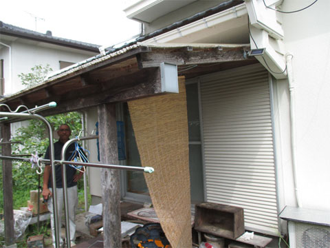 以前施工した大工さんが手を掛けた痕跡や工夫がかいま見れる、なかなか味のある庇です。柱などの構造部分の劣化もなくしっかりとしているので、これをこのまま使わせてもらう方針を立てました。