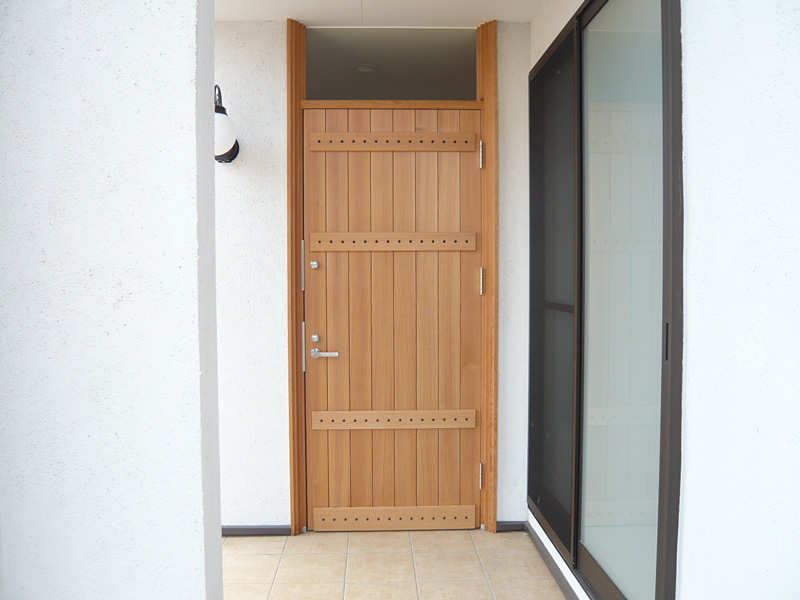外壁はそとん壁を使った左官仕上げとし、柱や軒裏などの木部にはウッドロング・エコを塗ってエイジング(古く見える)処理をしました。