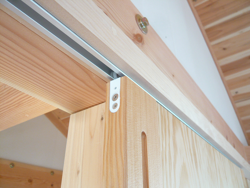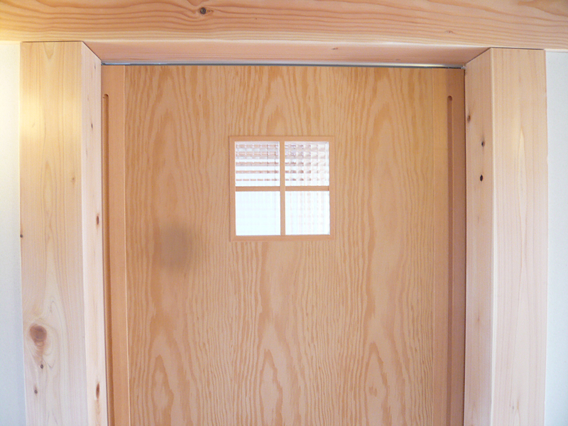 子供部屋は将来仕切って使えるようにあらかじめ出入り口を2ヶ所に設け、梁の下端には間仕切りパネルを差し込むための溝もあらかじめ彫ってあります。扉に仕込んだ明かり採りの小窓には、レトロなガラスを使用しました。