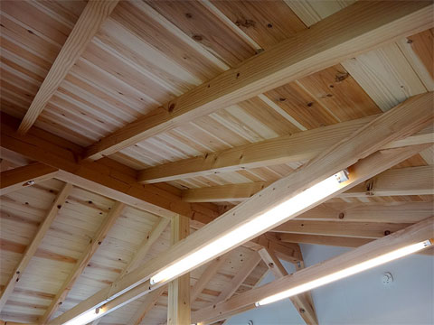 西側は軒桁を低くして、西北隣地の建物への日当たりに配慮してあります。長く住む家ですので、ご近所に対する思いやりも大切なことと思います。