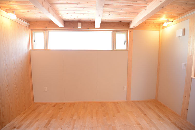 2階にはロフト風のフリースペースがあります。完全な個室ではなく、空間としてはリビングダイニングから連続したオープンなスペースです。上部のハイサイド窓は、左右対称に開くウインドキャッチ窓になっています。